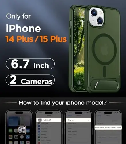 iPhone 15/14 Plus Case: Magsafe, with Stand, Military Grade Protection, Temdan
