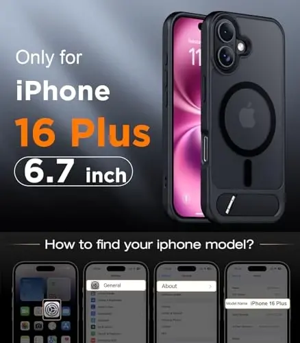 Meet the Temdan Magnetic Compatible with iPhone 16 Plus Case! This case is designed to provide superior protection and unparalleled convenience for your iPhone 16 Plus 6.7" device. Thanks to its integrated super-strong magnetic ring, it seamlessly supports MagSafe accessories, optimizing your wireless charging experience. You can use accessories such as magnetic chargers, wallets, battery packs, and in-car mounting brackets safely and quickly. The perfectly aligned magnetic ring ensures faster and safer wireless charging, allowing you to enjoy fast charging anytime and anywhere. The embedded magnetic ring has been tested under high pressure for thousands of hours, offering a secure structure that never falls off or breaks.Make your life easier with the innovative hands-free stand. Thanks to its angled design, it provides a more stable stance while offering a more comfortable viewing angle. It has been repeatedly folded with non-inductive bearings and a magnetic buckle design, supporting stable hovering and standing. This feature makes many activities, from watching videos to video calls, more enjoyable.Reliable drop protection protects your iPhone 16 Plus from all kinds of impacts. The new shock-absorbing design has successfully passed more than 2500 drop tests. Every corner and edge of the case is reinforced to provide maximum resistance to impacts. It provides comprehensive protection not only against drops, but also against scratches and other daily damage. The 1.5MM raised screen edge and 2.0MM raised camera edge protect your phone's screen and camera from scratches, drops and impacts. This way, you can always ensure the safety of your expensive device.With its unique and delicate design, the Temdan iPhone 16 Plus case is made of premium translucent matte material. This material offers a silky touch while giving your phone an elegant look. The non-slip grip design on the side of the case provides effective slip resistance and grip. In addition, thanks to anti-fingerprint technology, you can easily clean all fingerprints with just a light wipe. This feature offers you an excellent user experience.The Temdan Magnetic Compatible with iPhone 16 Plus Case not only offers protection and convenience, but also stands out with its stylish design. It preserves the original beauty of your phone while allowing you to add a personal touch to it. It is the perfect accessory to accompany you in daily use.