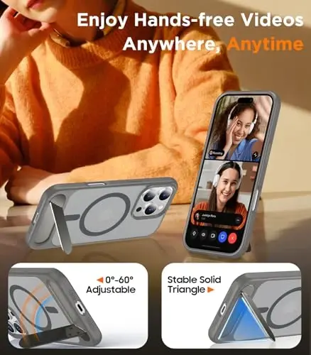 Introducing the Temdan Magnetic Compatible with iPhone 16 Pro Max Case. This case is designed to provide superior protection and functionality for your iPhone 16 Pro Max 6.9" device. With a built-in invisible stand and MagSafe compatibility, this case ensures you get the most out of your device. Thanks to its military-grade shockproof construction, your phone is kept safe from the rigors of daily use. The sleek, translucent matte finish not only looks great but also provides excellent grip. The super strong magnetic ring ensures seamless connection with MagSafe accessories, making wireless charging fast and secure. The innovative hands-free stand design offers a better viewing angle with its angled structure and stable stance. This case not only provides protection but also enhances your usage experience. With its fingerprint-resistant technology, it is easy to clean and always offers a clean look. The Temdan Magnetic Case is the perfect choice for your iPhone 16 Pro Max, allowing you to protect your style and keep your device safe. Remember, you don't have to sacrifice style while protecting your phone. Temdan offers you both. Unlock the full potential of your iPhone 16 Pro Max with this case and take advantage of all the benefits technology has to offer. Reliable protection, stylish design and superior functionality all in one. The Temdan Magnetic Case will take your iPhone 16 Pro Max experience to the next level.
