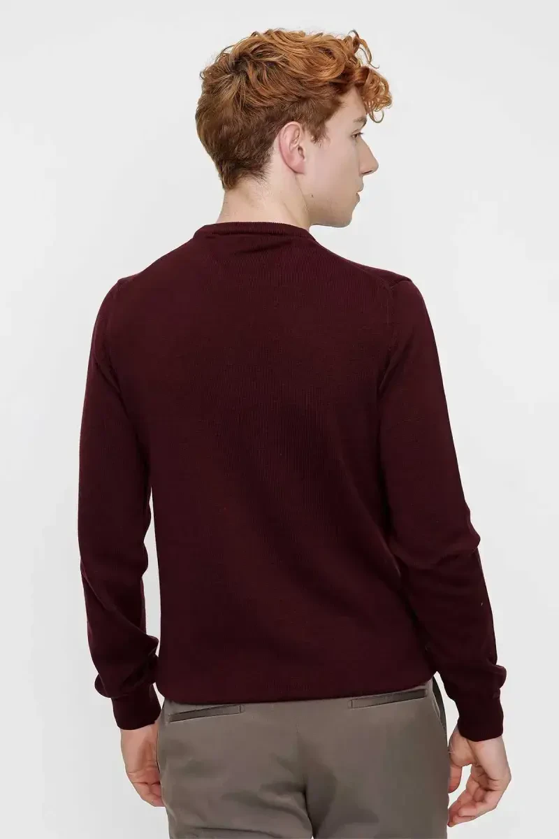 Бордовый Трикотажный Свитер: Динамичный Крой, Круглый Вырез, Свободный Крой