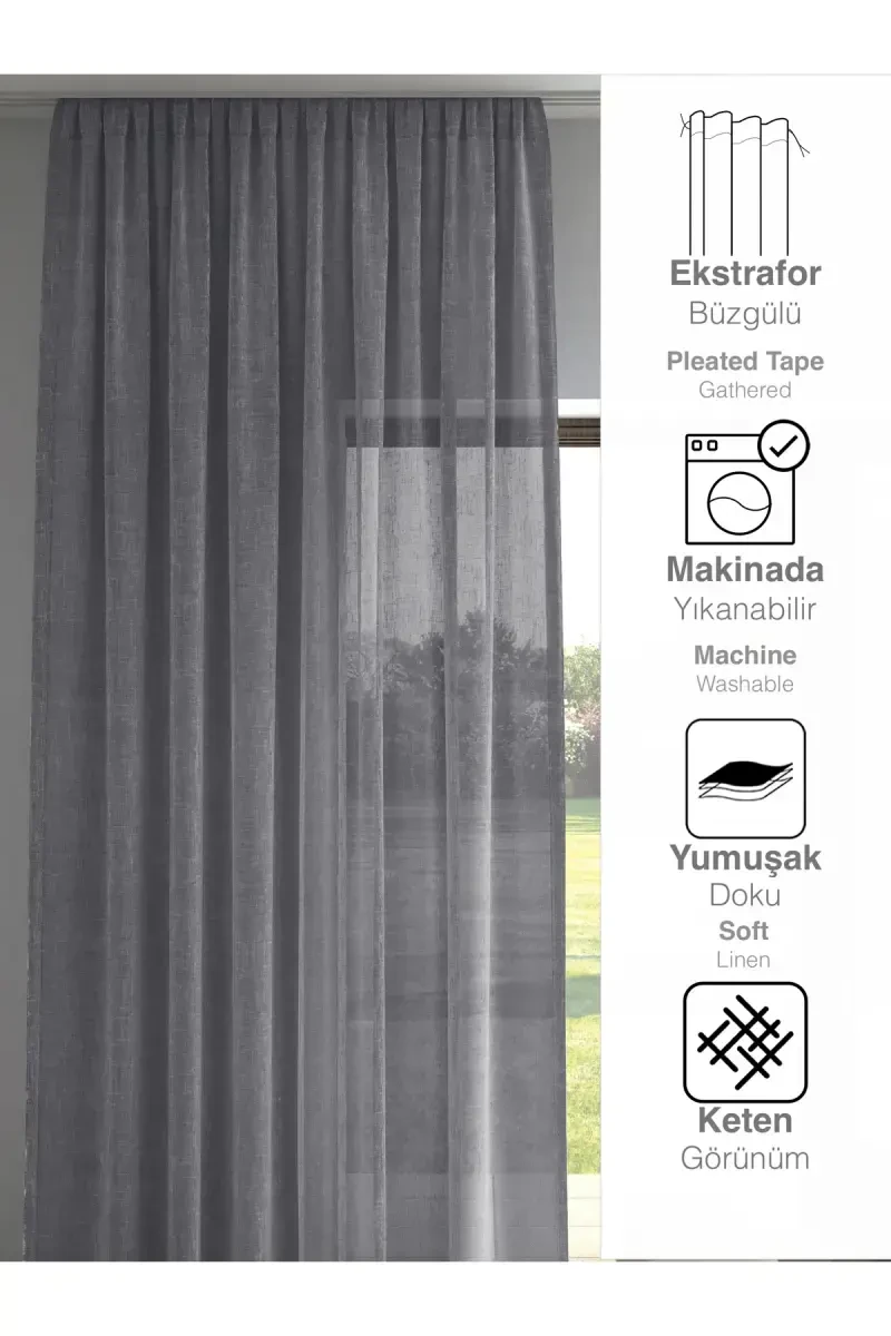 Koyu Gri Renk Keten Görünümlü Düz Tül Perde ile evinize sofistike bir dokunuş katın. Bu perde, modern yaşam alanları için ideal bir seçim olup, hem şıklığı hem de fonksiyonelliği bir arada sunar. Keten görünümü, mekana doğal ve sıcak bir hava katarken, düz tasarımı her türlü dekorasyon stiline kolayca uyum sağlar. Yüksek kaliteli polyester kumaştan üretilmiş olan bu tül perde, dayanıklılığı ve uzun ömürlü kullanımı garanti eder. Güneş ışığını etkili bir şekilde filtreleyerek, evinizde yumuşak ve davetkar bir atmosfer yaratır. Göz yorucu parlaklığı engelleyerek, gün boyunca konforlu bir ortam sunar. Perle markasının güvencesiyle sunulan bu perde, titizlikle hazırlanmış ve kalite kontrolünden geçirilmiştir. Ütü gerektirmeyen yapısı sayesinde, pratik bir kullanım sunar ve zamandan tasarruf etmenizi sağlar. Çocuk odasından salona, mutfaktan yatak odasına kadar her alanda kullanabileceğiniz bu şık perde, evinize değer katacaktır. Estetik görünümünün yanı sıra, hava geçirgenliği sayesinde sağlıklı bir yaşam ortamı sunar. Koyu gri rengi, ortama modern bir dokunuş katar ve diğer renklerle kolayca kombinlenebilir. Evinizin atmosferini yenilemek ve şıklığı yakalamak için Koyu Gri Renk Keten Görünümlü Düz Tül Perde ideal bir seçimdir. Üstelik, perde yanında gönderilen korniş stoperleri sayesinde kolayca monte edilebilir ve hemen kullanıma başlanabilir. Evinizin her köşesinde zarafeti ve konforu bir arada yaşayın. Unutmayın, bu ürün tek kanattır; çift kanat ihtiyacınız varsa, aynı ebatlarda iki adet sipariş vermeniz gerekmektedir. Perle kalitesiyle, evinizde fark yaratın.