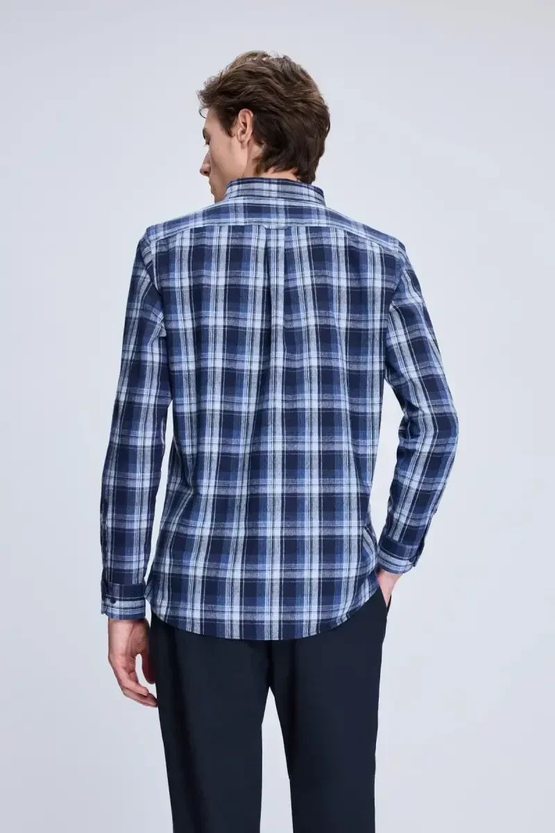 Темно-синяя рубашка Slim Fit в клетку на пуговицах с длинными рукавами добавит изюминку вашему элегантному образу и станет незаменимой вещью в вашем гардеробе. Эта рубашка представляет собой современную интерпретацию классического клетчатого рисунка, привлекая внимание своим идеальным кроем и превосходным качеством. Стильное сочетание глубокого темно-синего цвета и тонкой клетчатой текстуры делает ее идеальным выбором как для повседневной носки, так и для особых случаев. Изготовленная из высококачественного хлопкового материала, рубашка обеспечивает комфорт на весь день благодаря своей воздухопроницаемой структуре, а крой Slim Fit элегантно подчеркивает фигуру. Застежка на пуговицы добавляет рубашке изысканности, а сочетаться она может с любым низом. Создайте непринужденный образ с джинсами или же более официальный стиль, надев ее под костюм — темно-синяя рубашка Slim Fit в клетку на пуговицах с длинными рукавами всегда будет отличным выбором. Идеально подходящая для тех, кто ценит качество, стиль и комфорт, эта рубашка на долгие годы займет достойное место в вашем гардеробе, позволяя вам всегда выглядеть стильно. Вы можете смело надевать ее на важные мероприятия или в офис — эта уникальная рубашка, созданная с учетом мельчайших деталей, позволит вам чувствовать себя уверенно. Безупречные швы и прочная конструкция гарантируют длительный срок службы. Сочетающая в себе стиль и комфорт, эта рубашка станет одной из самых ценных вещей в вашем гардеробе.