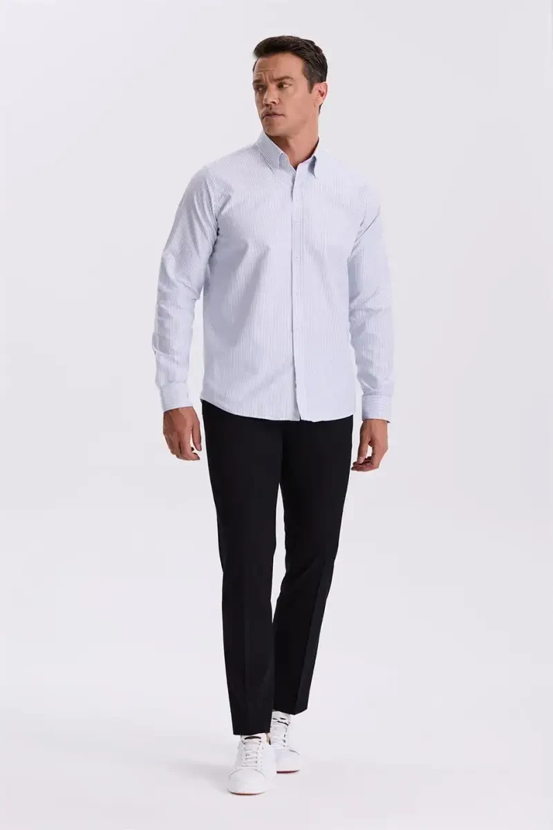 Классический воротник на пуговицах обеспечивает универсальный внешний вид, подходящий как для официальных, так и для повседневных случаев.