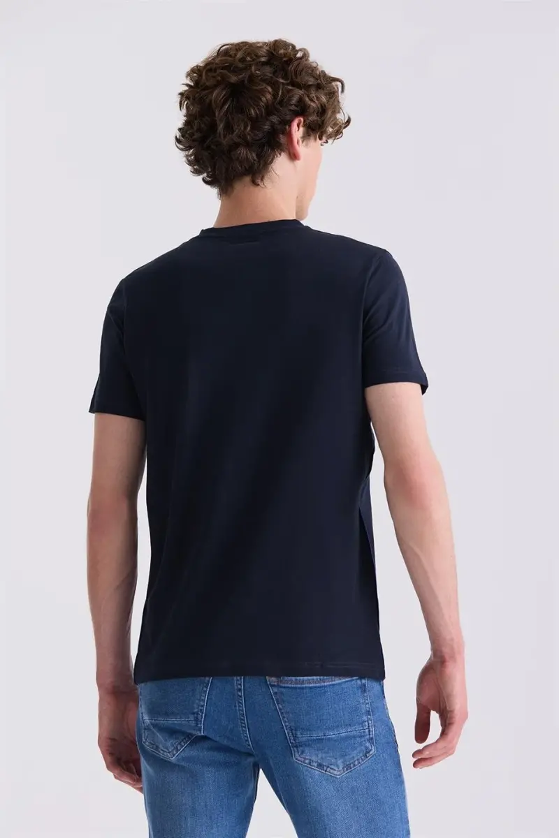 Оставайтесь стильными и удобными в нашей темно-синей облегающей футболке с круглым вырезом