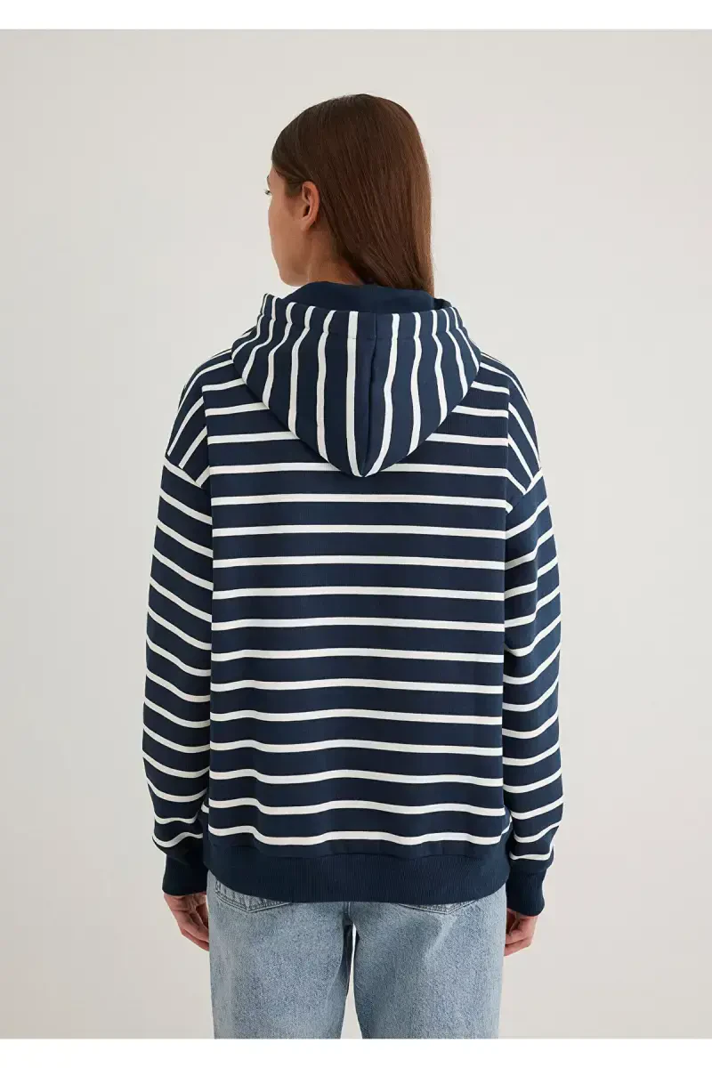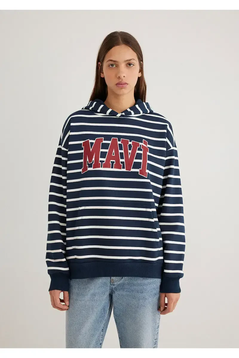 Свитшот с логотипом в сине-белую полоску - идеальный выбор для тех, кто предпочитает повседневный стиль. Вы можете легко носить этот свитшот в повседневной жизни, спорте или путешествиях, добавляя ценность вашему стилю и комфорту.