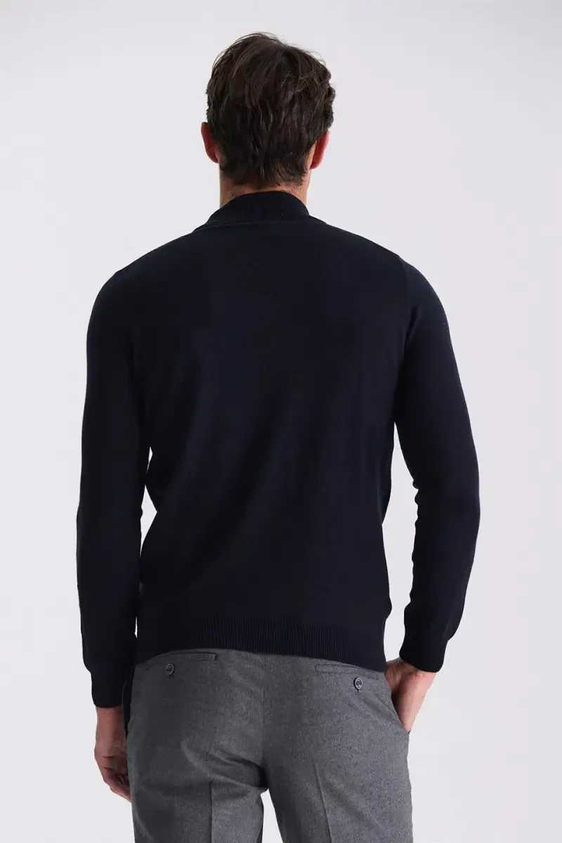 Тёмно-синий полуприлегающий трикотажный свитер: сочетание стиля и комфорта
