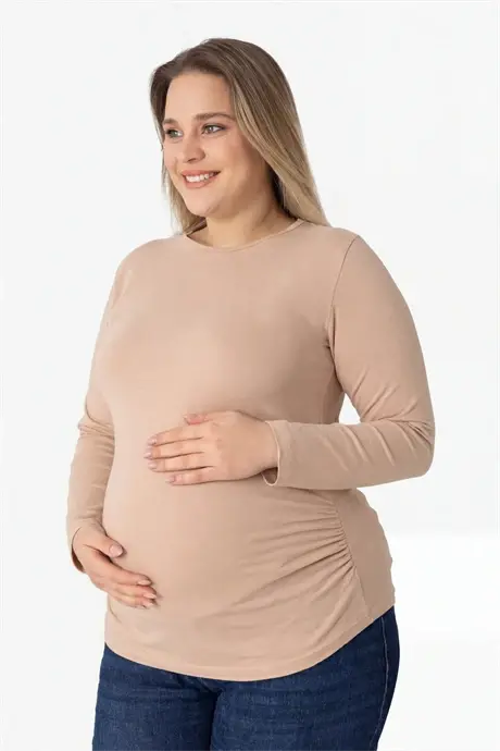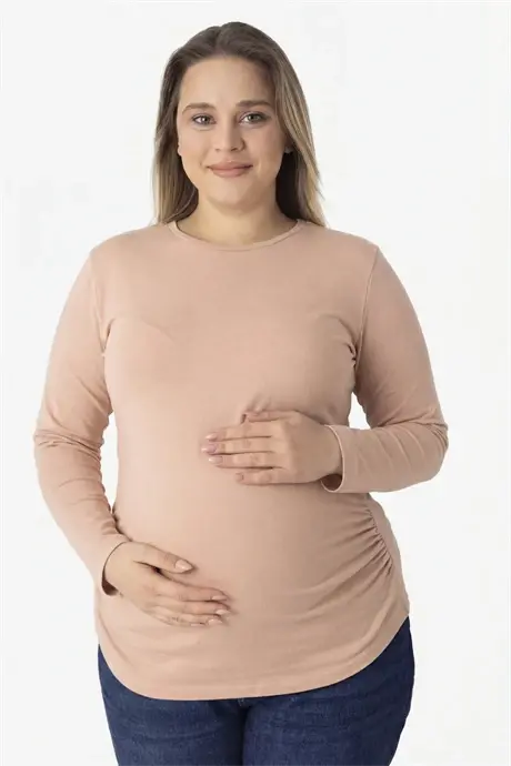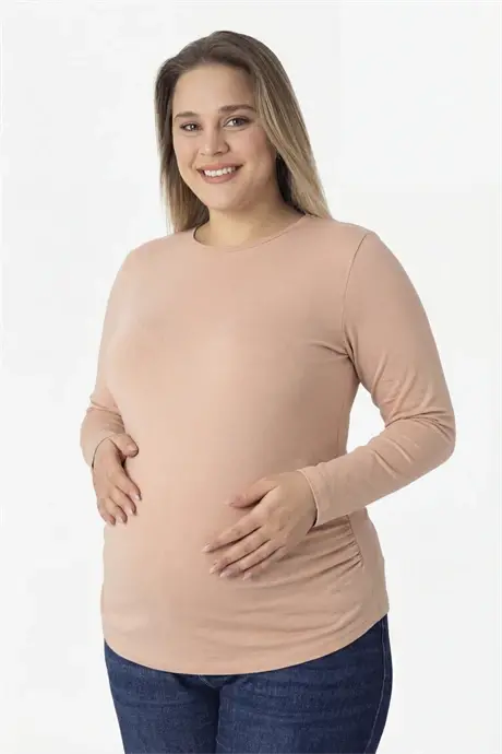 Ten Rengi Uzun Kollu Hamile Tişört Pamuklu Likralı Yumuşak ve Esnek Kumaş