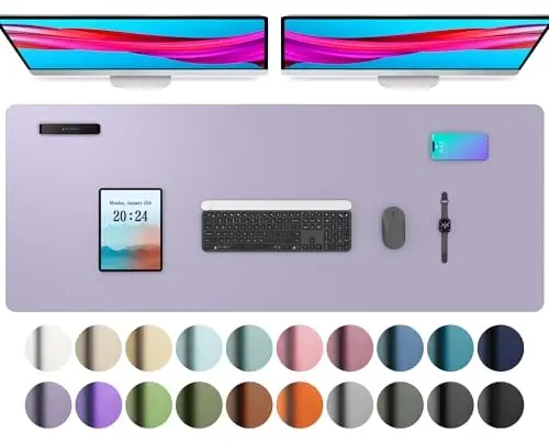 Leather Desk Pad Protector yuqori sifatli materiallardan ishlab chiqarilgan bo'lib, uzoq yillar davomida muammosiz foydalanishingiz mumkin bo'lgan mahsulotdir. Tozalash uchun faqat nam latta ishlatishingiz kifoya. Kimyoviy tozalash vositalaridan saqlaning. Mahsulotingizni to'g'ridan-to'g'ri quyosh nuridan uzoqroq tutib, ranglarining xiralashishiga yo'l qo'ymaysiz. Mahsulot o'lchamlari 48"x17" (taxminan 122 sm x 43 sm) bo'lib, ko'pchilik stol ustlari uchun ideal o'lchamdadir. Mahsulotning lavanda rangi tinchlantiruvchi va taskin beruvchi ta'sir ko'rsatadi, boshqa rang variantlari ham mavjud. Ofisingizda yoki uyingizda zamonaviy va hashamatli ko'rinish yaratish uchun Leather Desk Pad Protector'ni tanlashingiz mumkin.