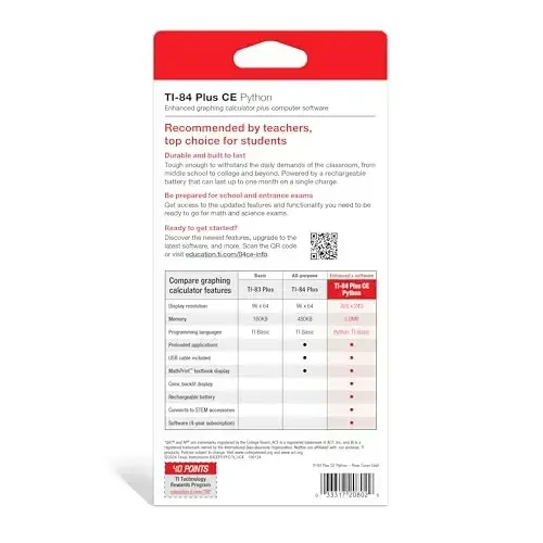 Texas Instruments TI-84 Plus CE rangli grafik kalkulyatori, atirgul oltin (metall) bilan matematika va fan darslarida muvaffaqiyatga erishing. Chiroyli va zamonaviy dizayni bilan ajralib turadigan ushbu kalkulyator murakkab tenglamalarni hal qilishdan tortib, grafik chizishgacha bo'lgan ko'plab amallarni osongina bajarish imkonini beradi. Yuqori aniqlikdagi, to'liq rangli va orqa yoritilgan displey tufayli ma'lumotlarni aniq ko'rishingiz mumkin. Qayta zaryadlanuvchi batareyasi tufayli batareyani almashtirish tashvishisiz uzoq vaqt foydalanishingiz mumkin. U oldindan o'rnatilgan ilovalar va vizualizatsiyalar bilan birga keladi, shuning uchun siz uni darhol ishlatishni boshlashingiz mumkin. MathPrint xususiyati matematik ifodalarni kitoblardagidek ko'rish imkonini beradi, shunda siz ularni osonroq tushunishingiz mumkin. Atirgul oltin (metallik) rangi bilan siz o'z uslubingizni aks ettirasiz, shuningdek, turli xil rang variantlari bilan siz shaxsiy afzalliklaringizga mos tanlov qilishingiz mumkin. Ushbu kalkulyator talabalar va mutaxassislarning matematik va ilmiy hisob-kitoblarini osonlashtirish uchun mo'ljallangan. Murakkab grafiklarni rangli holda ko'rishingiz, ma'lumotlarni tahlil qilishingiz va tenglamalarni hal qilishingiz mumkin. Imtihonlarda va darslarda xavfsiz foydalanishingiz mumkin bo'lgan ushbu kalkulyator sizga muvaffaqiyat yo'lida yordam beradi. Bundan tashqari, mahsulot bilan ta'minlangan keng qamrovli himoya rejasi bilan siz qo'shimcha kafolatga ega bo'lasiz. Ushbu reja nosozliklar, kuchlanish va boshqa mumkin bo'lgan muammolarni qamrab oladi, shunda siz kalkulyatoringizdan ko'p yillar davomida muammosiz foydalanishingiz mumkin. Tez va oson talab jarayoni tufayli, agar sizda biron bir muammo bo'lsa, siz osongina yordam olishingiz mumkin. Bundan tashqari, reja doirasida ta'mirlash, almashtirish yoki mahsulotning sotib olish narxi miqdorida pulni qaytarib olish variantlaridan foydalanishingiz mumkin. Texas Instruments TI-84 Plus CE bilan matematika va fan endi yanada qiziqarli va oson!