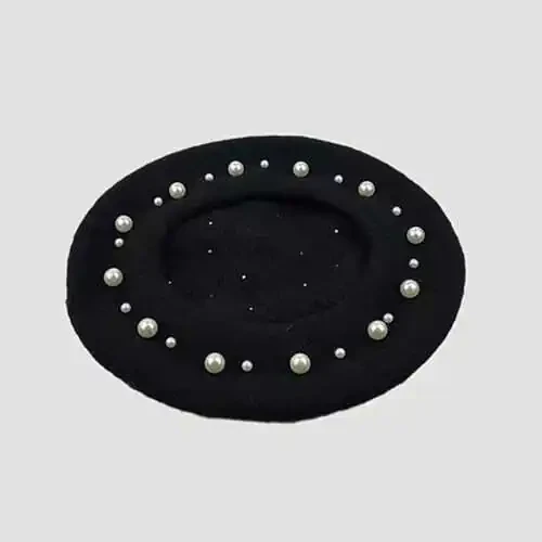 Tezuyok 2 штуки Зимние шерстяные береты Жемчуг Французский стиль Шапка-бини Однотонная зимняя шапка Бусинами украшенный берет для женщин и девушек Повседневное использование (Черный, Красный)