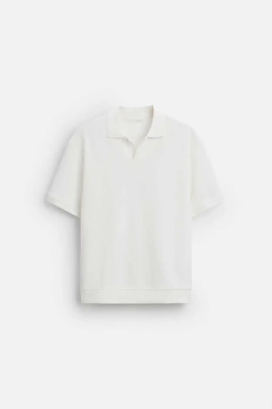 Кирли оқ йирик тўқима поло футболкаси – қулай ва замонавий