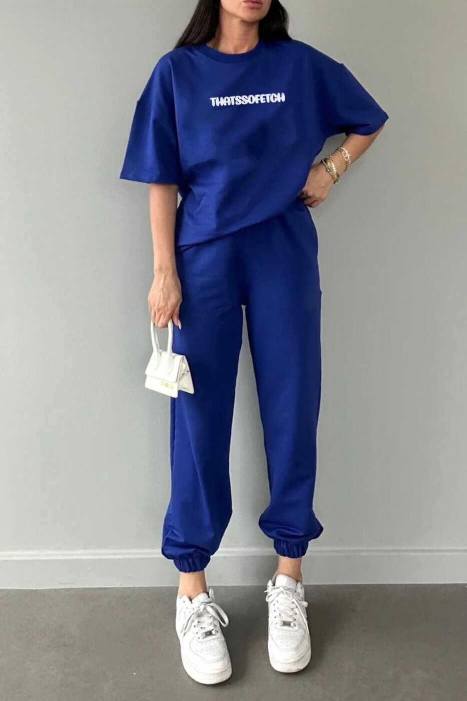 Rahatlığın ve tarzın bir araya geldiği Thatssofetch T-shirt Eşofman Altı Jogger ile günlük hayatınızda stilinizi konuşturun. Mavi baskı detaylı, oversize bisiklet yaka tişörtü ile konforlu ve şık bir görünüm elde edin. Jogger tarzı eşofman altı, esnek yapısıyla her hareketinize uyum sağlayarak gün boyu rahatlık sunar. Pamuk karışımı kumaştan üretilen bu takım, nefes alabilir ve yumuşak dokusuyla cildinize hoş bir his verir. Hem spor yaparken hem de günlük aktivitelerinizde kullanabileceğiniz bu şık takım, gardırobunuzun vazgeçilmez parçalarından biri olacak.