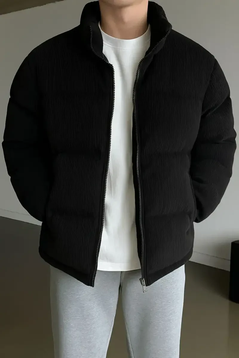 Want to stay both stylish and warm on cold winter days? Our puffer jacket made from thick corduroy fabric will protect you from the harshest winter conditions and add style to your look.