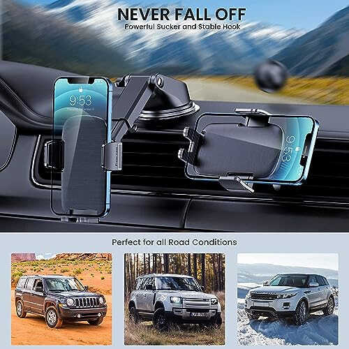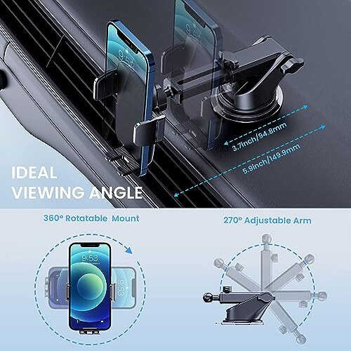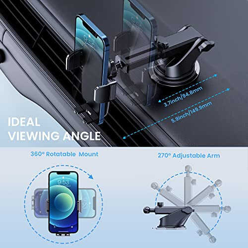 Upgraded 3 IN 1 Car Phone Mount: Phone mount for car is equipped with a stronger suction cup, thinner vent clip, and an innovative support ring for extra support, which can be freely mounted on the dashboard, windshield, and air vent. Suitable for most cars, pickup trucks, SUVs, trucks, and taxis. A good helper for Uber and Lyft drivers. Freely Adjust: Cell phone holder car with a telescopic arm extends from 3.7 inches to 5.9 inches which can adjust the distance between you and the car phone holder. The phone mount features a highly flexible ball joint 360 rotation for unlimited viewing angles. Heat-Resistance Suction Cup: Car phone holder mount is equipped with a double-lock suction cup and is made from heat-resistant TPU material that will not come off the dashboard even in hot conditions. The additional 3M dashboard pad provides a smooth surface that can be mounted anywhere for convenient driving. NOTE: Not recommended to use the dashboard pad for windshield mounting. All-Around Protection: Car Phone Holder is armed with an innovative hollow silicone rubber, which is more stable with other common silicone rubbers. The thick panels can provide full protection to keep your phone from scratches and drops. Highly Compatibility: Phone holder for car has a one-touch release system that can install your phone within seconds and ensure driving stability and safety. The adjustable clip arm is perfect for 4.0-7.1 inch phones.