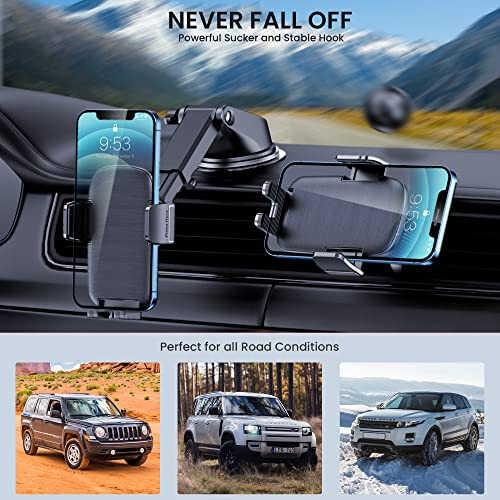 TICILFO Phone Mount for Car Phone Holder [Military-Grade Suction & Stable Clip] Car Phone Holder Mount Windshield Dashboard Air Vent Universal Automobile Mount Fit for All iPhone Android Smartphones