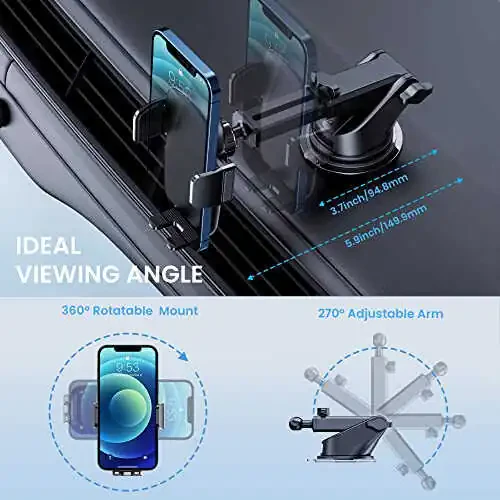 TICILFO Araba Telefon Tutucu, sağlam tasarımı ve güçlü vantuz sistemi ile telefonunuzu güvenli bir şekilde arabanızda tutmanızı sağlar. Askeri sınıf vantuz ve güçlü klips teknolojisi ile telefonunuzun düşmesi veya sallanması konusunda endişelenmenize gerek kalmaz. Araba telefon tutucumuz, tüm iPhone ve Android akıllı telefonlar için uygundur ve ön cam, gösterge paneli veya hava çıkışına kolayca monte edilebilir.