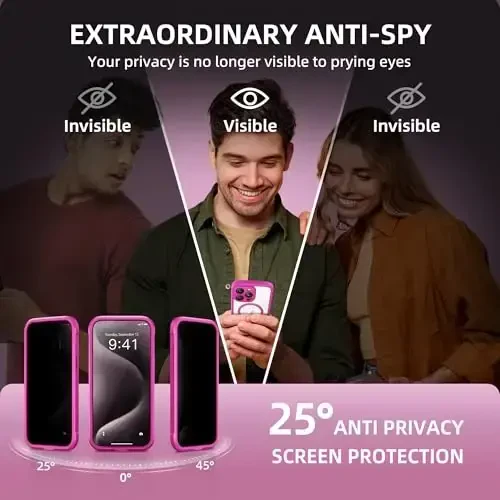 Combine style and security with the TIESZEN iPhone 15 Pro Max case! With its superior magnetic attraction, integrated privacy screen protector, advanced camera protection, dustproof design, and 360-degree full protection, this case is the perfect choice for your iPhone 15 Pro Max. The Rose Red color adds a distinctive touch to your phone, while MagSafe compatibility maximizes your wireless charging experience. The TIESZEN case is not just a protection; it is also an accessory that enhances your phone's performance and ease of use. Thanks to its advanced dustproof design, the sensitive points of your phone always stay clean, thus extending the life of your device and preventing performance degradation. Additionally, with the integrated privacy screen protector, the content of your screen is kept away from prying eyes, so your personal information is always secure. TIESZEN always prioritizes customer satisfaction, and therefore, this case is specially designed for iPhone 15 Pro Max users. Thanks to the case's perfect fit and precise cuts, you can easily access all the features of your phone. Experience both elegance and security with the TIESZEN iPhone 15 Pro Max case!