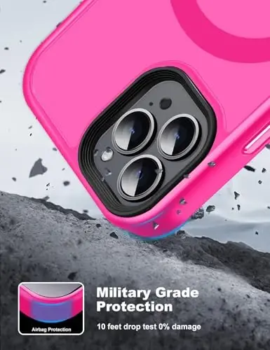 iPhone 15 Pro case, MagSafe case, magnetic case, pink case, shockproof case, drop resistant case, 6.1 inch case, Tigowos, wireless charging, phone protection