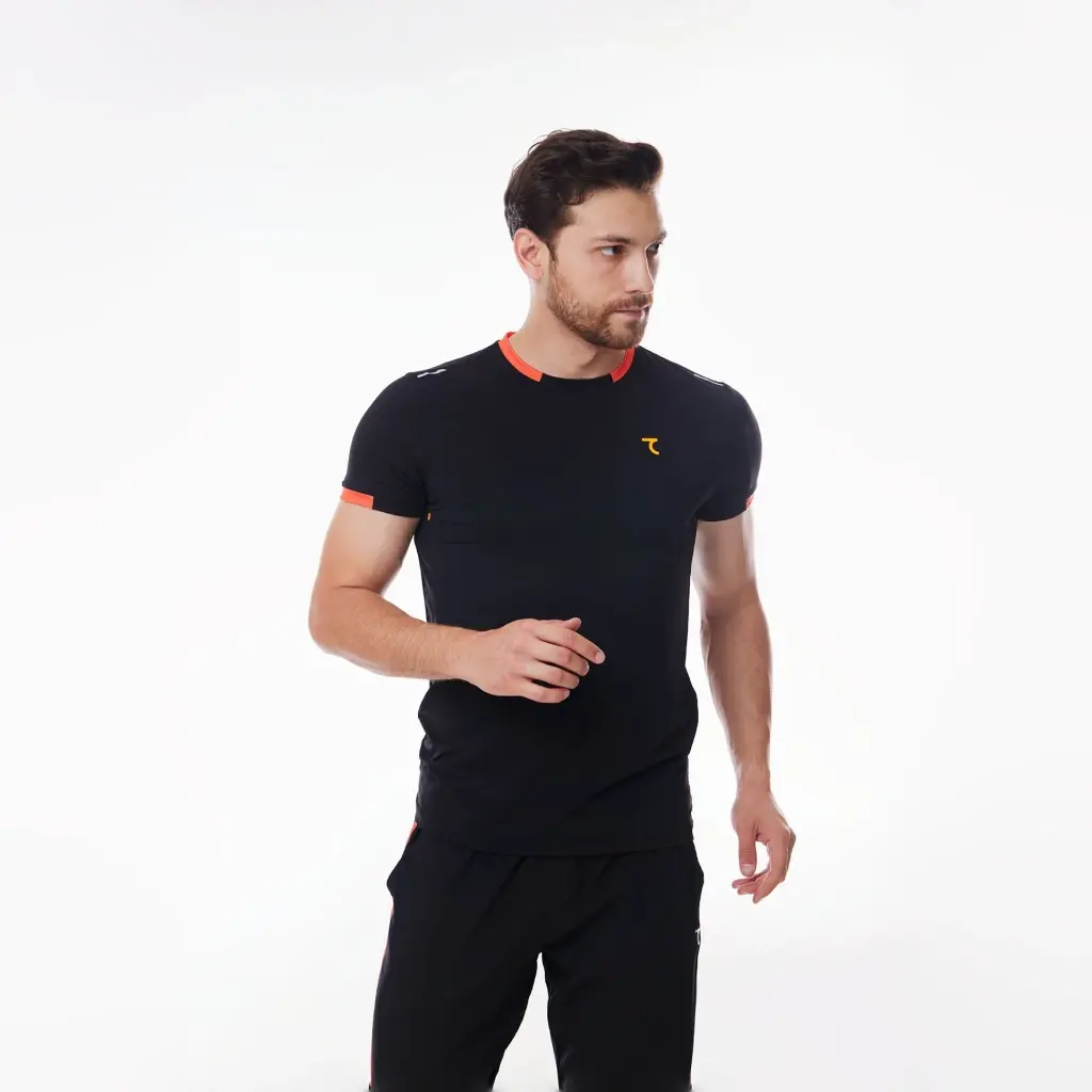 Футболка - ЧЕРНО-ОРАНЖЕВЫЙ обеспечивает комфорт в течение всего дня благодаря высококачественной ткани из смеси хлопка и удобному крою. Возможность машинной стирки обеспечивает практичность использования. Благодаря стильному дизайну и прочной конструкции идеально подходит для длительного использования.