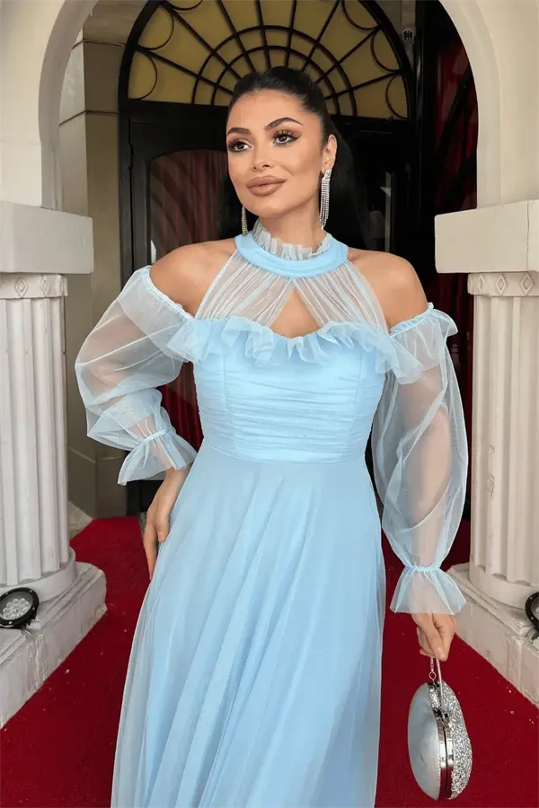 Тюлевое платье, платье с оборками, платье нежно-голубого цвета, дизайнерское платье, элегантное платье, романтичное платье, платье для особого случая, повседневное платье, женственное платье, летнее платье