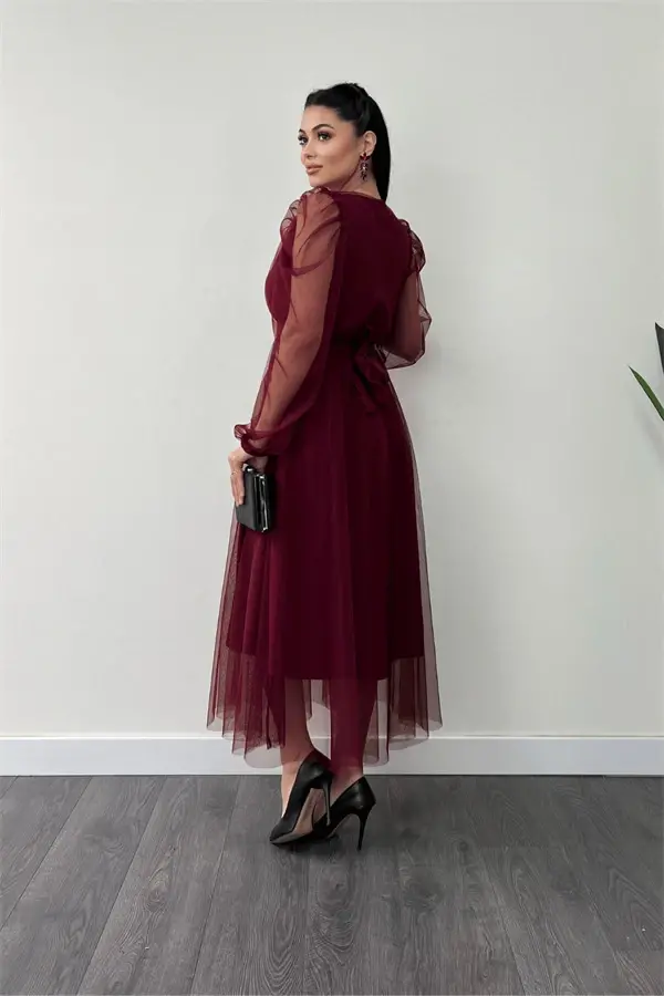 Идеальное сочетание элегантности и шика: платье из тюля с запахом, украшенное каменным поясом - БОРДО! Это великолепное платье, созданное для того, чтобы ослеплять на особых мероприятиях и вечеринках и наилучшим образом отражать ваш стиль, сочетает в себе благородство бордового цвета и легкость тюля. Вырез с запахом подчеркивает ваш женственный силуэт, а каменный пояс добавляет блеска вашему образу. Это платье, которое повысит вашу уверенность в себе на каждом шагу, станет незаменимой частью вашего гардероба.Длина платья от плеча составляет 125 см (может варьироваться в пределах 1-3 см), что обеспечивает как современный, так и элегантный вид. Дышащая структура тюля обеспечивает ваш комфорт даже при длительном использовании, а подкладка предотвращает просвечивание и обеспечивает комфортное ношение. Эластичная структура платья обеспечивает идеальную посадку по фигуре и не ограничивает вашу свободу движений.Это платье особого дизайна легко надевать и снимать, несмотря на отсутствие молнии. Нет детали бюстгальтера, что дает вам свободу комбинировать его с различными вариантами нижнего белья. Собираетесь ли вы на особое мероприятие или готовитесь к романтическому ужину, с платьем из тюля с запахом и каменным поясом - БОРДО вы привлечете к себе все взгляды в любой обстановке.На модели размер S/36, параметры модели: рост: 1,68 см, вес: 52 кг, грудь: 85 см, бедра: 90 см. Эта информация поможет вам при выборе подходящего размера. Вы также можете получить идеальный внешний вид, выбрав наиболее подходящий размер для своей фигуры с помощью этого элегантного платья. Пусть платье из тюля с запахом и каменным поясом - БОРДО говорит за ваш стиль и создаст незабываемые воспоминания!