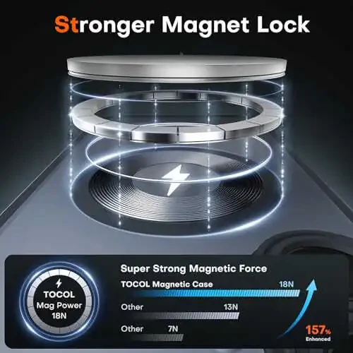 iPhone 16 Gʻilofi: TOCOL Magnetic, MagSafe Mos, Kamera Himoyali va Tushishdan Himoyali Qora Gʻilof
