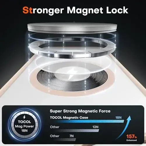 Чехол TOCOL Magnetic для iPhone 16e защищает ваш телефон от ударов, царапин и падений, которые могут произойти при ежедневном использовании, и в то же время предлагает стильный внешний вид. Благодаря функции магнитной зарядки он упрощает беспроводную зарядку. Он изготовлен из высококачественных материалов и отличается долговечностью. С нашим подходом к обслуживанию, ориентированным на удовлетворение потребностей клиентов, вы можете с уверенностью использовать чехол TOCOL Magnetic. Если у вас есть какие-либо вопросы или опасения по поводу вашего продукта, пожалуйста, не стесняйтесь обращаться к нам.
