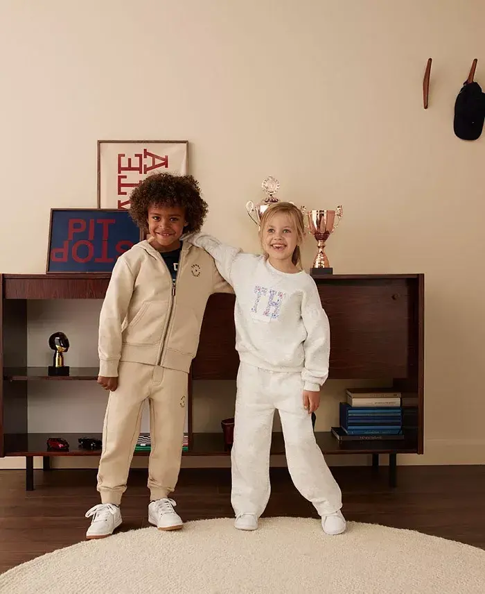 Bring comfort and style to your little gentlemen's wardrobe with the Toddler and Little Boys Essential Soft Fleece Joggers-Hummus from Tommy Hilfiger. These comfortable sweatpants will be your child's favorite piece with their soft fleece fabric and stylish details. Ribbed cuffs and waistband offer comfortable wear all day long, while the side stripe detail and logo graphics add a sporty touch to the sweatpants. Whether playing at home or spending time with friends outside, these Tommy Hilfiger sweatpants will accompany your child in every activity. Thanks to its tapered cut, it offers a modern look while not restricting freedom of movement. The side pockets are ideal for carrying small items. Designed with Tommy Hilfiger quality and elegance, these sweatpants will be indispensable for your child's wardrobe. Thanks to the soft fleece fabric, your child will feel warm and comfortable all day long. The ribbed waistband and cuffs ensure that the sweatpants fit snugly to the body, preventing them from slipping while moving. The side stripe detail and logo graphics add a sporty and stylish look to the sweatpants. An ideal choice for little gentlemen who want to be both comfortable and stylish. With these Tommy Hilfiger sweatpants, your child will always be stylish. These sweatpants are a perfect choice for daily use. The soft and comfortable fabric ensures that your child is comfortable all day long. Its stylish design ensures that your child looks stylish in any environment. Designed with the quality and elegance of Tommy Hilfiger, these sweatpants will be indispensable for your child's wardrobe.