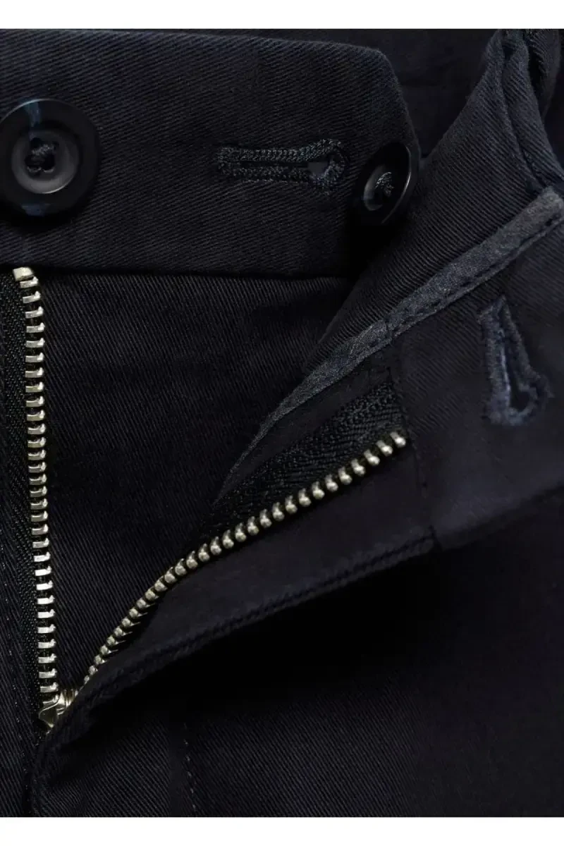 Bu zamonaviy va qulay tor kesim chino shimlar 98% paxta va 2% elastan qo'shimchasidan tayyorlangan yuqori sifatli cho'ziluvchan paxta matosidan tayyorlangan. Tor kesimi va besh qismli dizayni bilan ham qulaylik, ham uslubni taqdim etadi. Cho'ziluvchan mato harakat erkinligini ta'minlaydi. Besh qism kundalik buyumlaringizni osongina saqlashga imkon beradi. Kamar ko'prigi mukammal moslashuvni ta'minlaydi, fermuarli va tugmali yopish esa ishonchli va amaliy foydalanishni ta'minlaydi. Bundan tashqari, yon qismlar, tanga qismi va orqa chiziqli qismlar qo'shimcha saqlash joyini ta'minlaydi.