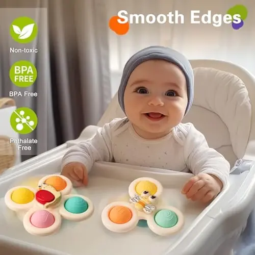 Baby toys, suction cup toy, spinning toy, fine motor skills, hand-eye coordination, sensory toy, baby gift, children's toys, educational toy, safe toy