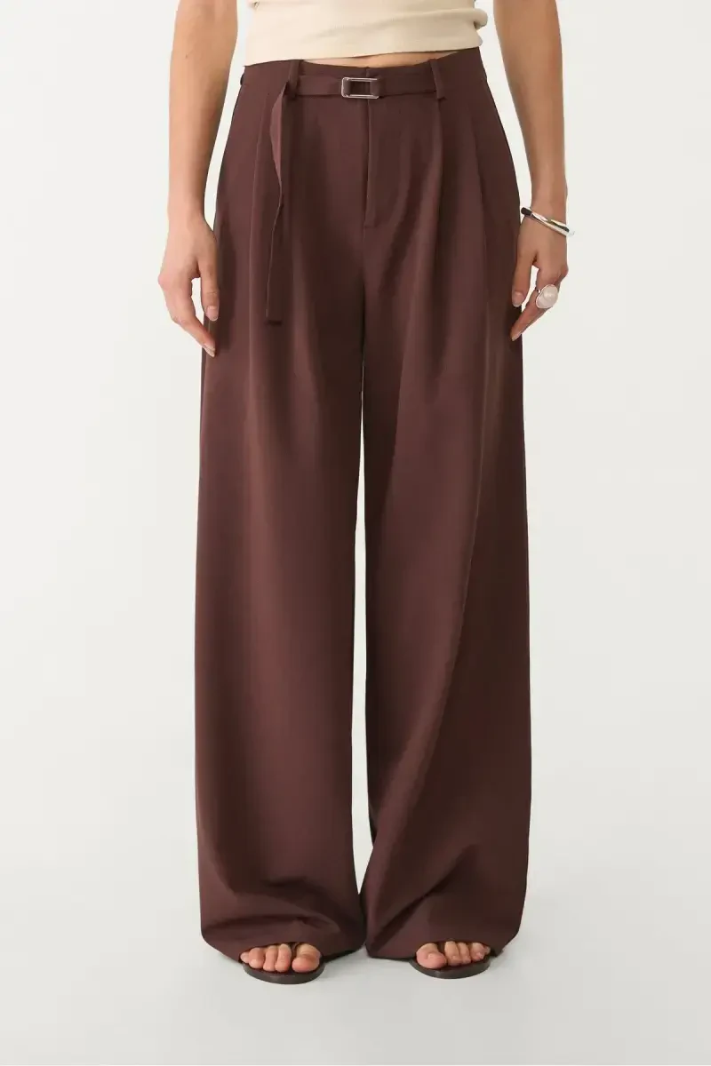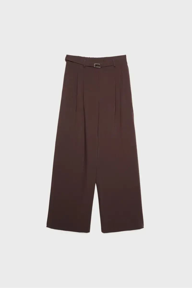 Tokalı Kemer Detaylı Geniş Kesim Pantolon ile gardırobunuza şıklık ve konforu bir arada katın. Koyu kahverengi rengiyle her kombine kolayca uyum sağlayan bu pantolon, Stradivarius kalitesiyle sunulmaktadır. Yüksek bel kesimi ve dökümlü yapısıyla gün boyu rahatlık sağlarken, şık detaylarıyla da göz kamaştırır. Arka kısmı lastikli bel detayı sayesinde vücudunuza mükemmel uyum sağlar. Önündeki metal tokalı ayarlanabilir kemer köprüsü ise pantolona modern ve özgün bir hava katar. Yan cepleri sayesinde kullanışlılık sunar, önemli eşyalarınızı yanınızda taşımanızı kolaylaştırır. Düz ve geniş paçalı tasarımıyla hareket özgürlüğünüzü kısıtlamaz. Ön pens detayları ise pantolonun duruşunu zenginleştirir. Önden fermuarlı, içten düğmeli ve metal kancalı kapama sistemi sayesinde kolayca giyilebilir ve çıkarılabilir. Bu pantolon, hem günlük kullanım hem de özel günler için ideal bir seçimdir. Modelin boyu 172 cm olup, üzerindeki beden 36'dır. Koyu kahverengi tonu, sonbahar ve kış aylarının vazgeçilmezi olacak. Şıklığı ve rahatlığı bir arada arayanlar için mükemmel bir tercih olan bu pantolon, gardırobunuzun en sevilen parçası olmaya aday. Stilinizi yansıtacak ve size özgüven katacak bu pantolonu kaçırmayın! Tokalı kemer detayı, geniş kesimi ve konforlu yapısıyla bu pantolon, her ortamda fark yaratmanızı sağlayacak. İster topuklu ayakkabılarla şık bir kombin yapın, ister spor ayakkabılarla daha rahat bir stil oluşturun, bu pantolon her durumda size eşlik edecek. Günün her anında kendinizi iyi hissetmenizi sağlayacak olan bu pantolon, gardırobunuzun vazgeçilmez bir parçası olacak. Bu pantolonla hem şık hem de rahat olmanın keyfini çıkarın. Koyu kahverengi rengiyle her türlü üst giyimle kolayca kombinlenebilir ve farklı tarzlar yaratmanıza olanak tanır.