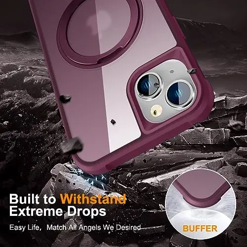 TOKVANZ Designed for iPhone 13/14 case is designed to protect your phone from the challenges of daily life while providing a stylish and convenient experience. This case is perfectly compatible with your iPhone 13/14, giving it an aesthetic appearance while safely protecting your device from scratches, bumps and drops. One of the outstanding features of the case is the integrated 360-degree rotatable magnetic ring stand. Thanks to this stand, you can position your phone at any angle and enjoy hands-free video watching or video calls. Thanks to its magnetic feature, it is perfectly compatible with your MagSafe accessories, and you can safely use all MagSafe products from chargers to wallets. Equipped with military-grade drop protection, this case protects your phone against all kinds of hazards thanks to its hard polycarbonate back and shock-absorbing TPU frame. The air cushions on the corners absorb the impact in case of a fall and prevent your phone from being damaged. The raised edges around the camera and screen protect your lens and screen from scratches, while the matte translucent surface is resistant to fingerprints and smudges. You can comfortably use your phone thanks to its ergonomic design and silky touch, and minimize the risk of slipping. TOKVANZ Designed for iPhone 13/14 case takes your iPhone 13/14 experience to the next level by combining elegance, convenience and superior protection features.