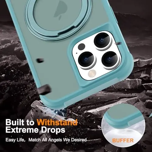 TOKVANZ iPhone 16 Pro uchun g'ilof 360° aylanuvchi magnit halqali stend bilan [Mag-Safe mos] [Harbiy darajadagi himoya] Yarim shaffof matli telefon g'iloflari ayollar va erkaklar uchun 6.3'', Yashil