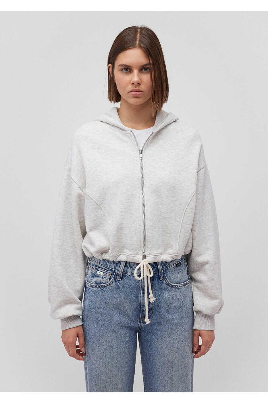 Подчеркните свой стиль с помощью бежевого кроп-свитшота с капюшоном и молнией