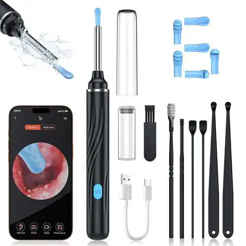 With the Tomaje Earwax Removal Tool with Camera, your ear cleaning worries are over! Equipped with a 1080P HD camera and 6 adjustable brightness LED light, this device allows you to explore and magnify every corner of your ear canal. The 20 fps low-latency view feature ensures safe and effective ear cleaning. Ideal not only for adults, but also for checking the throats, teeth, noses, and other body parts of children and pets. The built-in 350 mAh rechargeable battery offers up to 90 minutes of use after a full charge. It withstands more than 100 charge cycles and its portability allows you to easily take it anywhere. Its lightweight and compact design (2.4 ounces and 5.78x0.55x0.55 inches) allows for convenient carrying in your pocket or bag. The IP67 waterproof otoscope, lens, and ear scoop are easily cleaned by wiping or rinsing (but please do not submerge the entire device in water). It easily connects and is used via WiFi connection through the Smart View app. Compatible with iOS and Android systems, it allows you to see real-time images, take photos, and record videos to track your ear health. You can adjust the light brightness through the app. The package includes a 1080P HD Ear Cleaner Camera, dust cover, removable metal ear scoop, 6 silicone ear scoop tips, silicone ear scoop tip storage case, 5 traditional ear cleaning kits, cleaning brush, charging cable, and user manual. It's a great gift option for birthdays, Thanksgiving, Christmas, New Year's, Father's Day, Mother's Day, Valentine's Day, and anniversaries. It helps protect the ear health of your family and friends, while saving you on doctor visit costs. Please feel free to contact us if you have any questions.