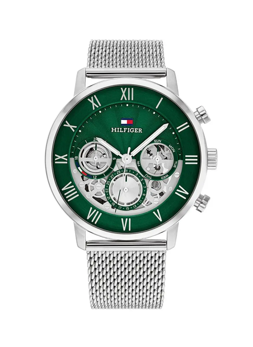 Tommy Hilfiger TH1710567 Erkek Kol Saati, şıklığı ve fonksiyonelliği bir araya getiren özel bir tasarıma sahiptir. Paslanmaz çelik kasası ve lacivert kadranı ile dikkat çeken bu saat, günlük kullanımın yanı sıra özel günlerinizde de tarzınızı tamamlayacak mükemmel bir aksesuardır. Mineral camı sayesinde çizilmelere karşı dayanıklıdır. 5 ATM su geçirmezlik özelliği ile güvenle kullanabilirsiniz. Takvim özelliği sayesinde güncel tarih bilgisine kolayca ulaşabilirsiniz.