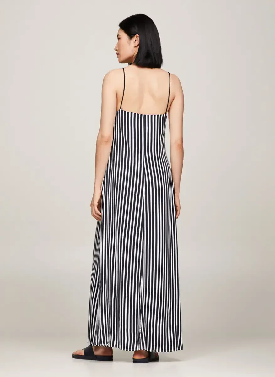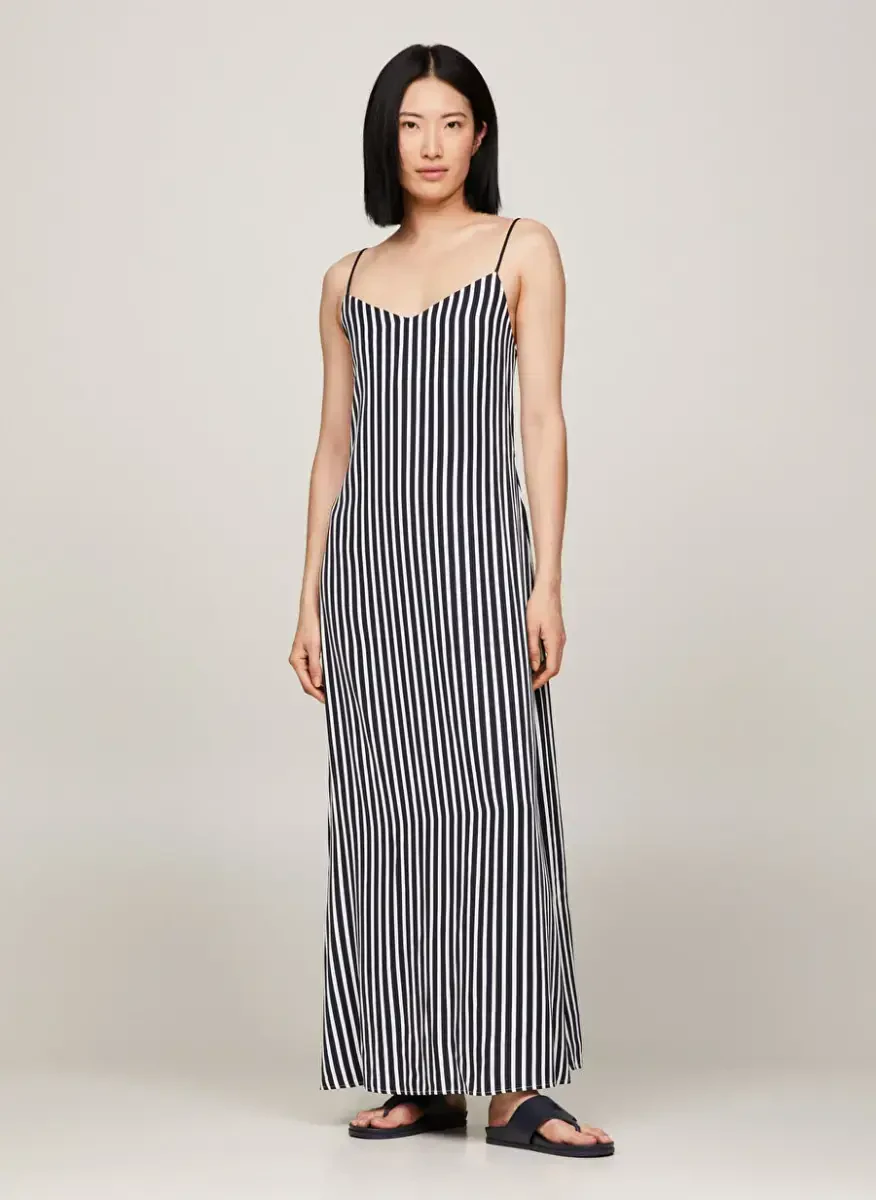 Add a modern and stylish touch to your style with the Tommy Hilfiger V-Neck Striped Navy Blue Long Women's Dress FLUID STRIPE ANKLE SLIP DRESS. This dress, one of the most popular pieces of the 2024 Spring/Summer season, offers a perfect option for daily use. Combining the elegance of navy blue and the dynamism of the striped pattern, this long dress is a candidate to be an indispensable part of your wardrobe. Thanks to its 100% viscose material, it offers a comfortable and light use experience throughout the day, while its woven fabric type ensures that you do not compromise on your elegance. With its V-neck, strap detail and pocketed design, this dress, which is both comfortable and useful, fits your body perfectly thanks to its normal fit. You can easily choose this dress for your daily combinations or special events, and it will keep its place in your wardrobe for many years with Tommy Hilfiger quality. While offering safe use with its non-see-through structure thanks to its textile lining, it also creates an elegant silhouette with its long length. Fluid Stripe Ankle Slip Dress is an ideal choice for women who want to combine both comfort and elegance. This dress, which will be the choice of those who want to look remarkable and stylish in any environment, offers a modern alternative in daily wear. Let your style speak with this dress that reflects Tommy Hilfiger's unique design understanding. This piece, which should definitely be in your closet, prioritizes your elegance and comfort. Available in sizes 34, 36, 38 and 40, this dress is suitable for every body type and makes every woman feel special.