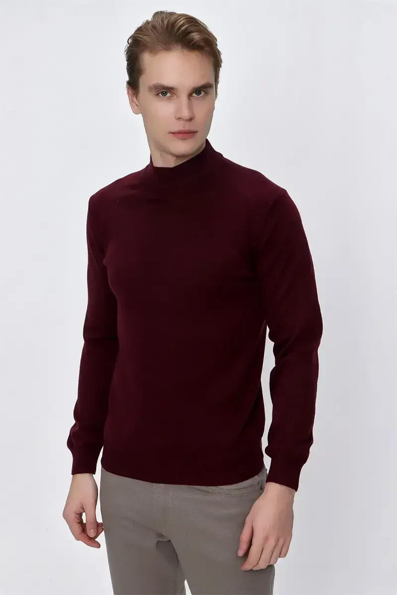ko'y bordo kazak, triko kazak, yarım balıkçı yaka, dinamik fit kazak, rahat kesim kazak, basic kazak, erkak kazak, bordo triko, şık kazak, modern kazak