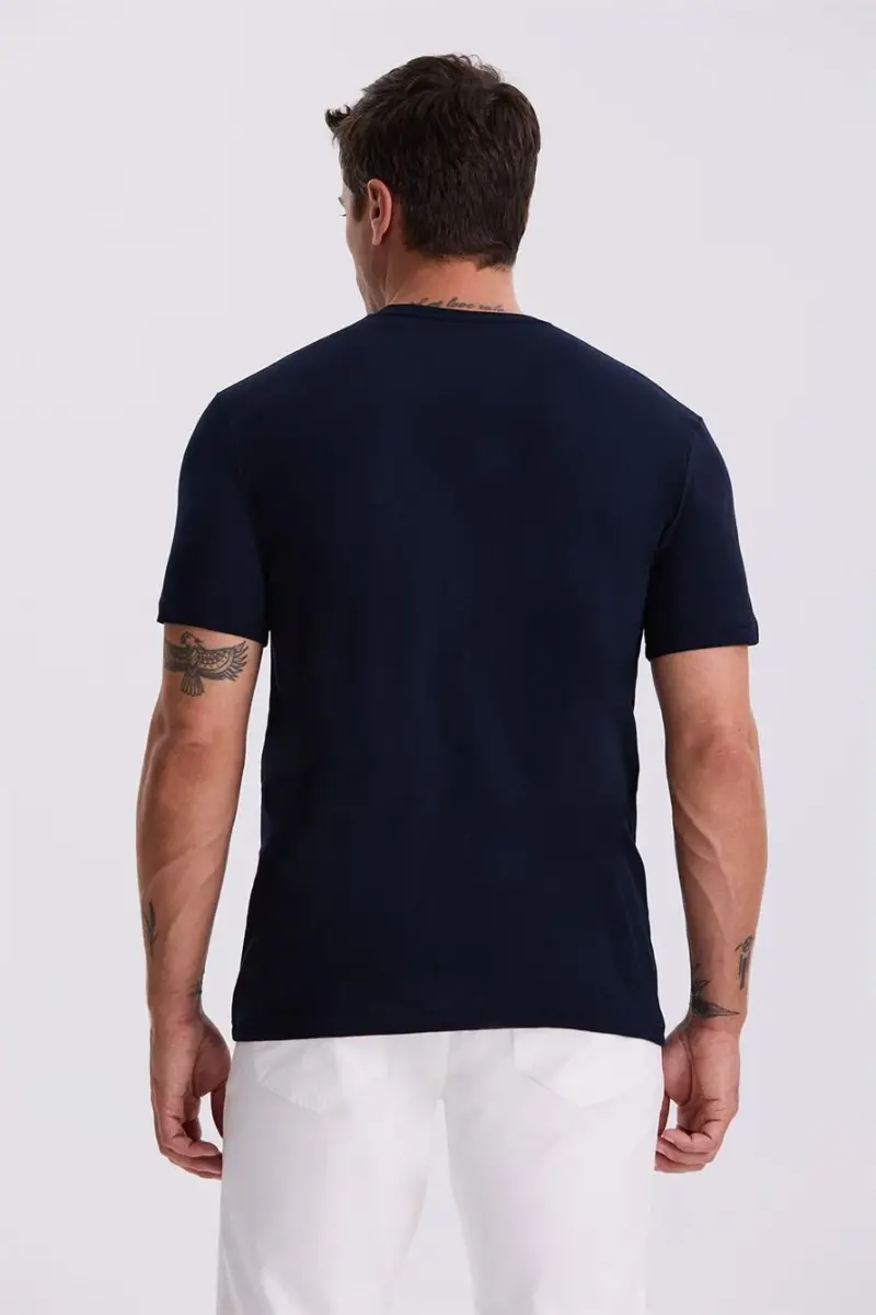Garderobingizning eng asosiy va ajralmas qismiga aylanishga nomzod bo'lgan To'q ko'k rangli 100% paxtadan tikilgan Slim Fit dumaloq yoqali Basic futbolkasi nafosat va qulaylikni o'zida mujassam etadi. Kundalik hayotning har bir lahzasida, xoh sport uslubidagi kiyimlar bilan, xoh klassik kurtka ichida kiyib, uslubingizni to'ldirishingiz mumkin bo'lgan ushbu maxsus dizayn, yuqori sifatli paxta to'qimasi tufayli teringizga nafas olish imkonini beruvchi tajribani va'da qiladi. To'q ko'k rangning olijanob va abadiy tuslari har qanday faslda va har qanday muhitda o'zingizni ishonchli his qilishingizni ta'minlaydi. Slim fit kesimi bilan tana shaklingizga zamonaviy va kelishgan ko'rinish bag'ishlasa, dumaloq yoqa detali bilan minimalist estetikani aks ettiradi. Ishlab chiqarishda foydalanilgan 100% tabiiy paxta tolalari matoning yumshoq tuzilishini saqlab qolgan holda, uzoq muddat foydalanishda ham shaklini yo'qotmasligiga yordam beradi. Terlatmaydigan tuzilishi tufayli kun bo'yi tetiklik hissini taqdim etadi. Ayniqsa, yoz oylarida yolg'iz o'zi, salqin havolarda esa kardiganlar yoki charm kurtkalar bilan mukammal uyg'unlikni hosil qiluvchi ushbu basic futbolka garderobingizdagi boshqa kiyimlar bilan benuqson tarzda moslashadi. Xoh jinsi shimlari bilan kundalik ko'cha uslubini yarating, xoh mato shimlari bilan ofis nafosatiga erishing; bu futbolka har doim eng qutqaruvchi qismingiz bo'ladi. Sifat, soddalik va nafosatga ahamiyat beradigan erkaklar uchun maxsus ishlab chiqilgan.