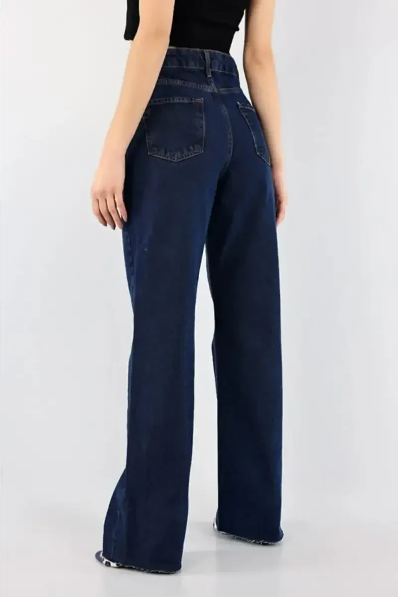 To‘q ko‘k shim, palazzo shim, baland belli shim, likrali shim, keng shim, o‘ta baland bel, power likra, qulay shim, ayollar shimi, jinsi shim