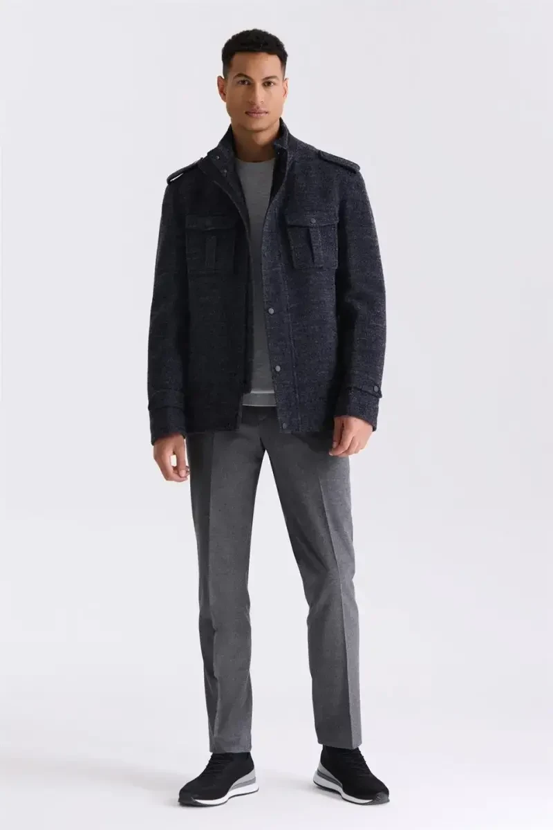 Erkaklar uchun kashem palto, Ingichka kesim palto, Naqshlangan palto, Sport kashem palto, To'q ko'k palto