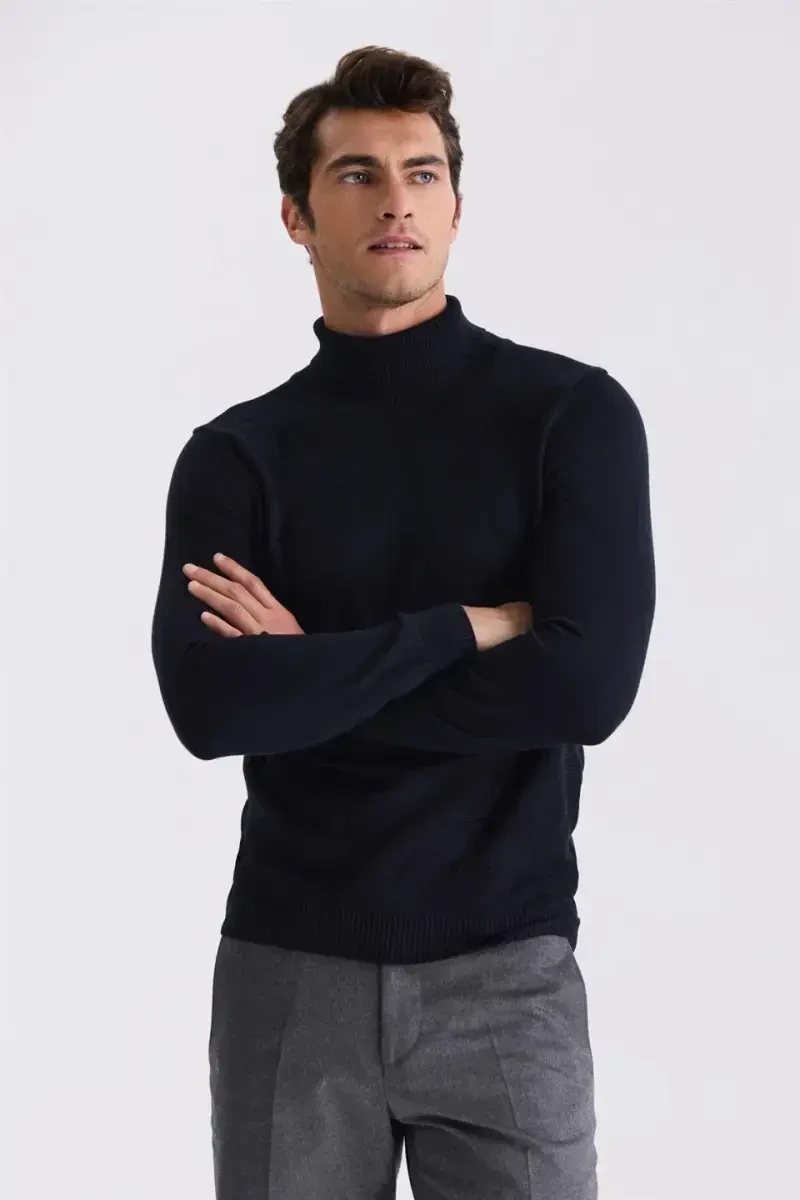 Ko'k moviq Slim Fit To'liq Balchiqli Yاقة Nakşli Triko Jomper | Qulay va Shik