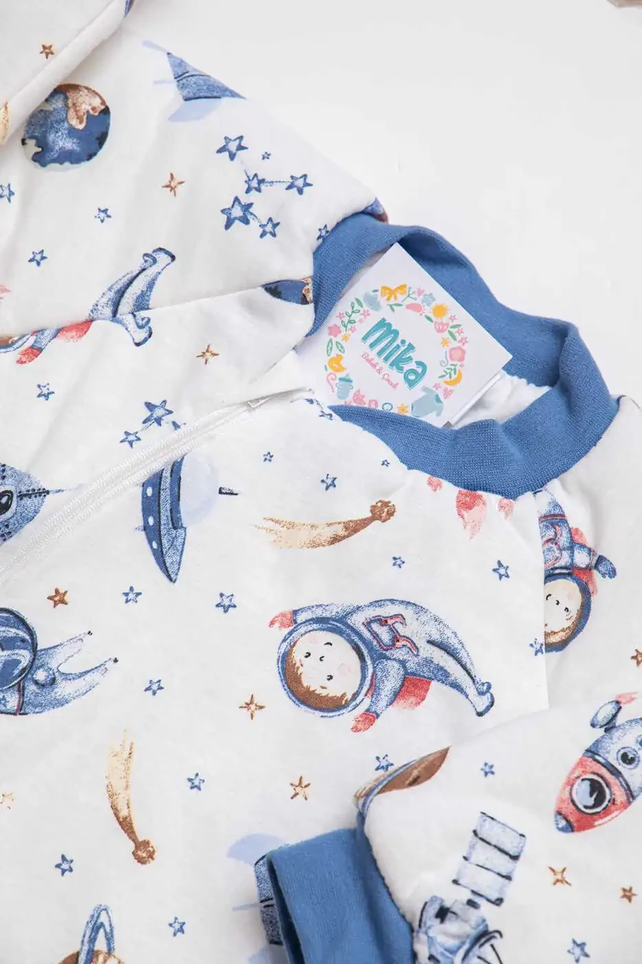 Kichkina kosmonavtingizning qulay va iliq uxlashi uchun Tor torli kosmik naqshli moviy bezli Elyaf to'ldirilgan 2,0 Tog Erkak bolalar uchun yotoq kostyumini hoziroq savatchaga qo'shing!