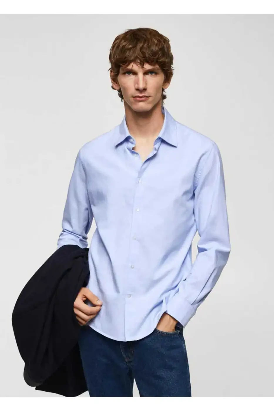 Oksford koʻylagi, tor kesim, paxta, uzun yeng, klassik yoqa, qulay, jozibador, zamonaviy