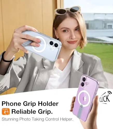 Protect your phone from all angles with the TORRAS 360° Stand & Magnetic Shockproof iPhone 16 Plus case. This transparent case not only offers a stylish look but also provides unique features and superior protection for your iPhone 16 Plus. Its most notable feature is the 360-degree rotatable stand, adjustable at various angles, allowing for both horizontal and vertical mode usage. This ensures maximum efficiency when using your phone at home, in the office, or on the go. Adjustable angles between 25° and 135° provide you with the most comfortable viewing and usage experience. Moreover, this stand is elegantly integrated without disrupting the overall design of the case, adding extra weight or thickness to your phone, and is extremely durable.