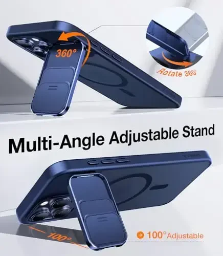 If you are looking for the perfect protection and convenience for your iPhone 15 Pro Max, the TORRAS Slide Camera Cover and Rotating Stand Case is for you. This case protects your device from everyday bumps, scratches, and drops, while also enriching your usage experience with its unique features. Thanks to its magnetic structure, it works seamlessly with MagSafe accessories and does not interrupt your wireless charging experience.TORRAS's case is not only a protection tool but also a style statement. Its transparent blue color preserves the original design of your iPhone 15 Pro Max while adding an elegant touch. The case's sliding camera cover protects your lens from scratches and bumps while also ensuring your privacy. You can close your camera when you don't need it, so you can use your phone with peace of mind.The rotating stand feature provides great convenience when you want to watch videos, make video calls, or just hold your phone steady on a table. The stand can be adjusted at different angles, so you can find the most comfortable viewing angle. Thanks to military-grade drop protection, you can be sure that your phone is safe even in the most challenging conditions. TORRAS has worked meticulously to maximize the safety of your device.The surface of the case is resistant to fingerprints and scratches, so it always looks clean and new. Its ergonomic design allows you to hold your phone comfortably and prevents slipping. TORRAS's case is the perfect complement to your iPhone 15 Pro Max. Both stylish and functional, this case will accompany you in your daily life and keep your device safe at all times.As TORRAS, we prioritize customer satisfaction. Therefore, if you experience any problems with our case or if it does not meet your expectations, please do not hesitate to contact us. We are always here to offer you the most suitable solution. Our 180-day warranty is a testament to our confidence in the quality of our product. Protect your iPhone 15 Pro Max with TORRAS and reflect your style!