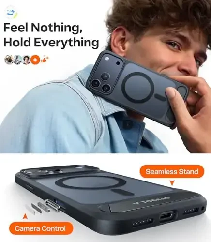 TORRAS Strong Magnetic & Seamless Stand for iPhone 17 Pro Case, iPhone 17 Pro kullanıcıları için hem koruma hem de kullanım kolaylığı sunan ideal bir aksesuardır. Şık tasarımı ve pratik özellikleriyle günlük yaşamınızda telefonunuzu güvenle kullanmanızı sağlar. Dahili stant, video izlemek, görüntülü görüşme yapmak veya içerik oluşturmak için mükemmel bir çözüm sunarken, güçlü mıknatıslar MagSafe aksesuarlarınızla sorunsuz bir şekilde çalışır. Askeri düzeyde koruma, telefonunuzu düşmelere ve darbelere karşı güvende tutarak pahalı onarımların önüne geçer. Kamera kontrol düğmesi entegrasyonu, fotoğraf ve video çekimlerinizi daha hızlı ve kolay hale getirir. Bu kılıf, iPhone 17 Pro'nuz için sadece bir koruyucu değil, aynı zamanda stilinizi ve kullanım alışkanlıklarınızı geliştiren bir araçtır.