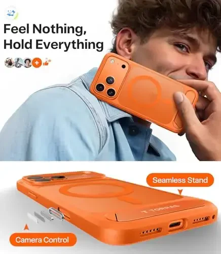 TORRAS, iPhone foydalanuvchilari uchun eng yaxshi himoya yechimlarini taqdim etishni maqsad qilgan. Strong Magnetic & Seamless Stand g'ilofi, yuqori sifatli materiallardan ishlab chiqarilgan bo'lib, uzoq umr ko'rish uchun mo'ljallangan. G'ilofning dizayni, iPhone 17 Pro Max'ingizning barcha xususiyatlariga osongina kirishingizni ta'minlagan holda, qurilmangizni xavfsiz himoya qiladi. G'ilofning MagSafe mosligi, simsiz zaryadlash va boshqa MagSafe aksessuarlaridan foydalanganda hech qanday muammoga duch kelishingizga yo'l qo'ymaydi. Sozlanishi mumkin bo'lgan stend xususiyati, telefoningizni turli burchaklarda ishlatishingizga imkon berib, video ko'rish va video qo'ng'iroq tajribangizni yaxshilaydi. Translucent Matte Cosmic Orange rangi esa qurilmangizga shaxsiy teginish qo'shib, uslubingizni aks ettirishingizga yordam beradi. TORRAS bilan iPhone 17 Pro Max'ingizni ham himoya qiling, ham go'zallashtiring.