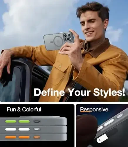 As TORRAS, we attach great importance to the quality of our products and customer satisfaction. If you encounter any problems, please do not hesitate to contact us. Your satisfaction is our priority, and we are always ready to provide you with the best solution. With the colorful button packs that come with our product, you can personalize your case and make it suitable for your style. The transparent design of the case allows you to showcase the original color and design of your iPhone 15 Pro. The TORRAS Magnetic Shockproof iPhone 15 Pro Case offers long-lasting use and a unique experience.