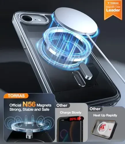 Protect your iPhone 16e (2025) while showcasing your style with the TORRAS Magnetic Shockproof case. This case combines superior protection features with MagSafe compatibility and a sleek design for a unique experience. Its transparent and scratch-resistant construction preserves the original beauty of your phone, while the enhanced magnetic feature allows you to use all your MagSafe accessories safely. The TORRAS Magnetic Shockproof case stands out with its resistance to drops, scratches, and impacts. Having successfully passed military-grade drop tests, this case protects your phone against all kinds of risks. The precision-engineered airbag technology provides 360-degree protection, keeping every corner of your phone safe. Raised edges around the camera and screen prevent surface contact, providing additional protection against scratches. Thanks to the case's MagSafe compatibility, you can seamlessly use wireless chargers, car mounts, and other magnetic accessories. Its powerful magnets ensure that your accessories adhere firmly to your phone, offering a safe and secure user experience. TORRAS-BACH Magnetic Array technology offers 90% higher magnetic power compared to other magnetic cases. Make your iPhone 16e phone more free, easier, and smarter. The skin-friendly and non-slip textures on the sides of the case provide a velvety feel while offering a better grip. Thanks to the high-quality and durable material, you'll enjoy a long-lasting user experience. TORRAS's unique detachable and precise buttons perfectly restore the feel of your phone's original buttons. You can add a personal touch to your phone by changing the buttons to different colors. The TORRAS Magnetic Shockproof case not only provides protection but also highlights the elegance of your phone. Its transparent design allows you to showcase your phone's color and design, while its slim structure makes it easy to carry in your pocket or bag. This case is an excellent choice for keeping your iPhone 16e (2025) safe and reflecting your style.